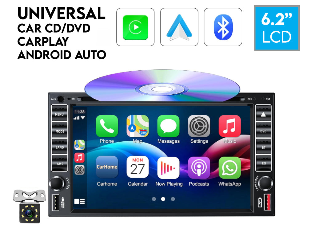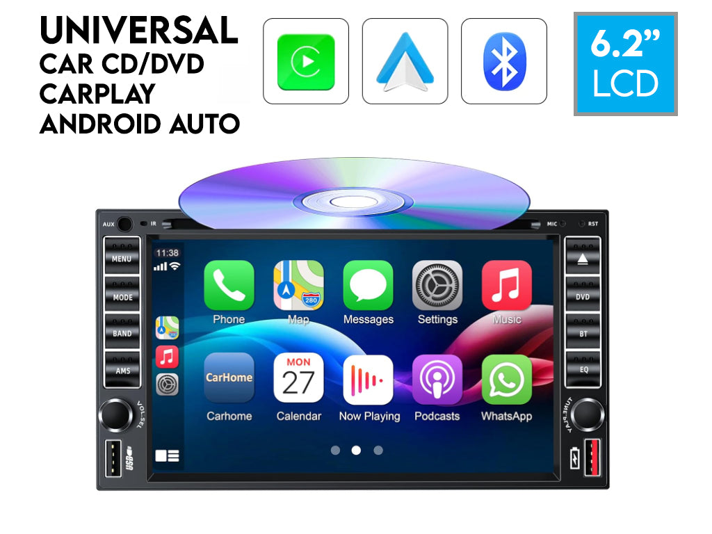 Upgrade your vehicle with this CD/DVD head unit, featuring a capacitive touchscreen for a smooth and responsive experience. Enjoy wired and wireless CarPlay & Android Auto, hands-free calls, and music streaming while keeping the option for CD/DVD playback. With Bluetooth, USB connectivity, and reversing camera support, this head unit delivers both modern convenience and classic media compatibility.