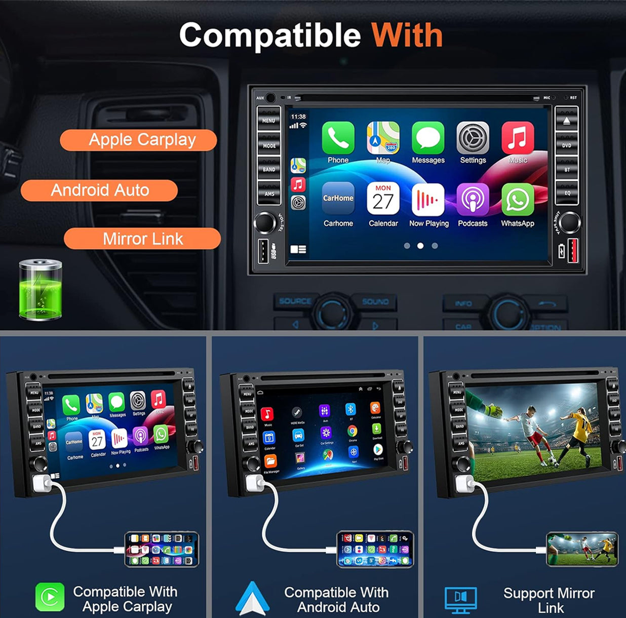 - Built-in support for both wired and wireless CarPlay and Android Auto