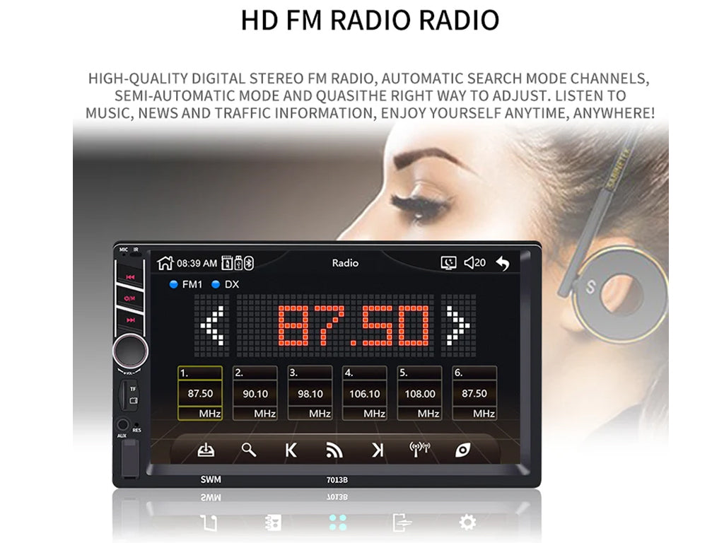 This universal Car MP5 Stereo has physical buttons for easier volume control. It has support for wired CarPlay and Android Auto.