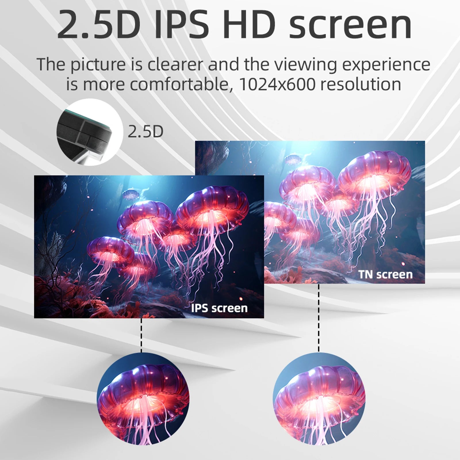 * 7" Multi-Touch Tempered Glass LCD IPS Screen, 1024x600 pixels