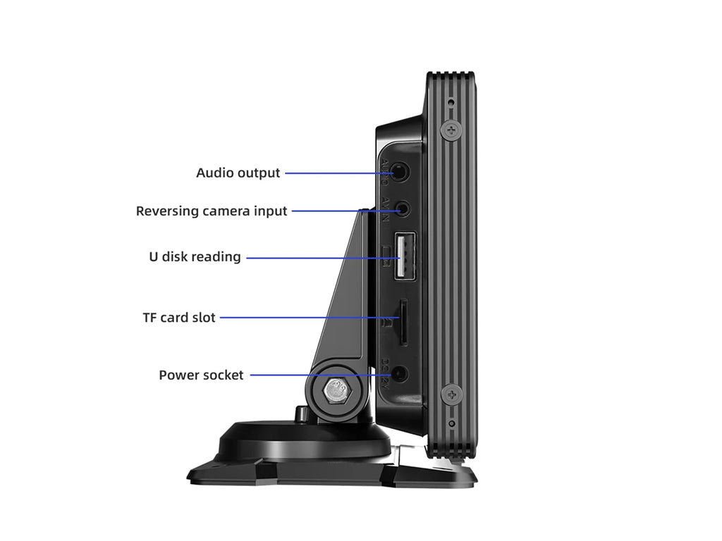 Audio plays through your car’s factory stereo via the built-in FM transmitter or AUX cable. It also features a small in-built speaker.